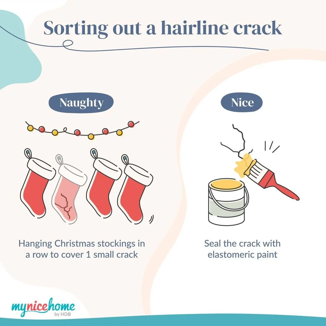 singaporehdb Are you naughty or nice with your home maintenance habits? Hairline cracks may seem harmless, but they can lead to major home problems, like spalling concrete. Seal them up while things are still easy to manage!